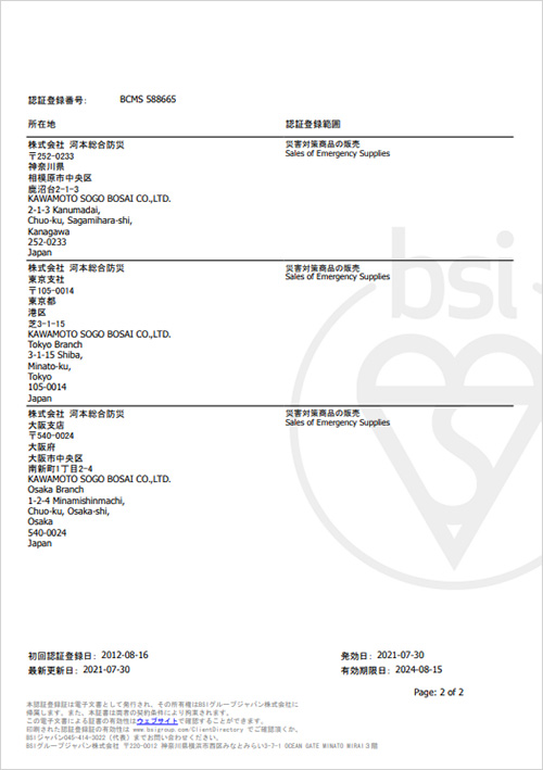 総合防災企業で世界初、事業継続マネジメントシステムの国際規格「ISO22301」を取得。